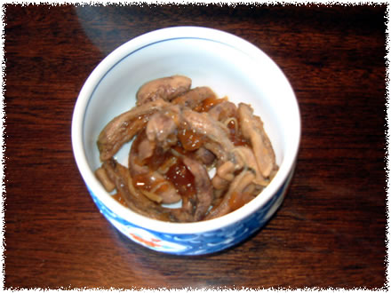 肝は焼きではなく珍しい「肝煮」。冷蔵されていて、煮凝りが実に旨い。