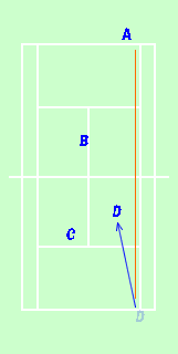 Dが、Aへの返球でネットアプローチすると言うのも面白いでしょう。