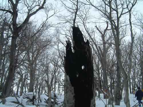 ハイカーのタバコの火で焼け落ちたそうで、中は真っ黒だった。