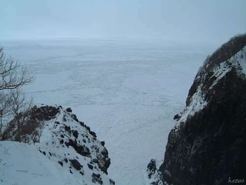展望台から流氷のオホーツクを臨む