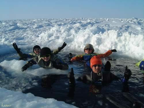 ドライスーツの中の空気が浮き袋になって、潜りたくても沈めないんです。