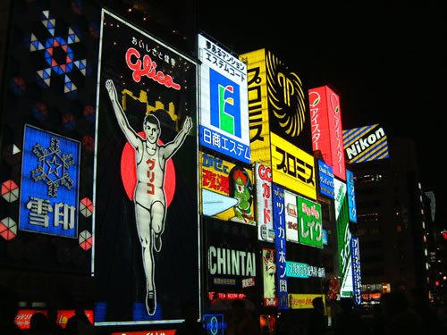 (3) おなじみのグリコのネオンは鮮やかだった。
