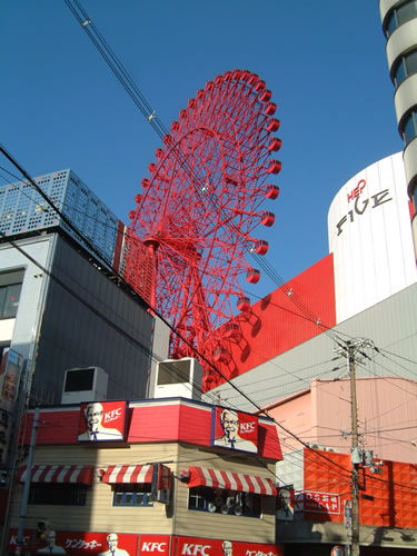 (13) HEP FIVE:大阪駅のすぐ脇のショッピングビルの屋上にある大観覧車。