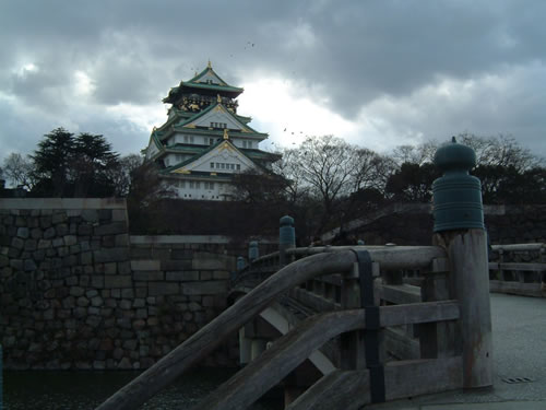 (23) そしていよいよ大阪城へ。昼を過ぎていたが食事は後回しにした。駅を降りたのは私一人だった。ホームからはるか彼方に天守閣が見える。散々歩いた後だけに少々うんざりしたがタクシーを使う年ではない。野球場、大阪城ホールの脇を抜け、ひたすら歩き、ようやく外堀に掛かる橋にたどり着いた。